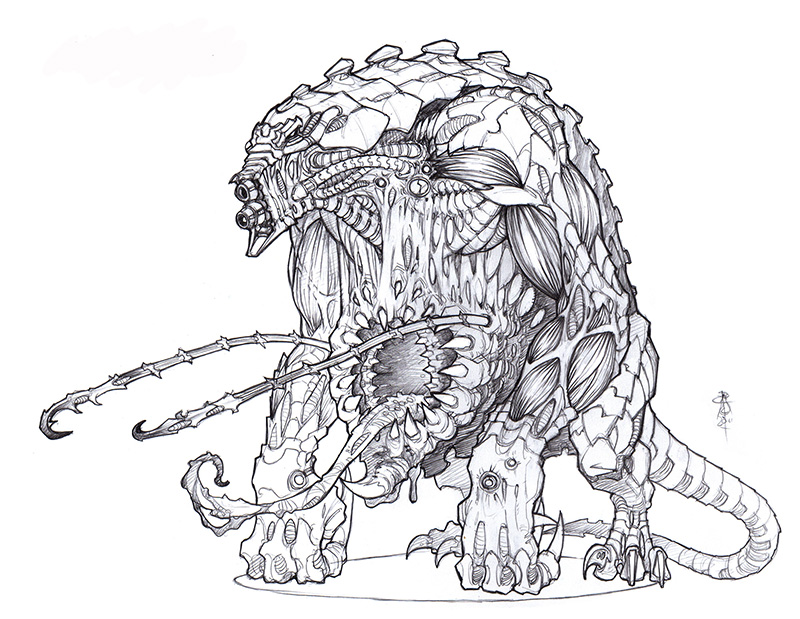 The Grendlr is the largest and most imposing of all the Strain miniatures (in this game anyway!) - so it really needed to be represented with an impressive sculpt. I commissioned the work to Jacques-Alexandre Gillois, who I have worked with quite a bit on our Limited Edition resin line - and who's sculpting never fails to amaze me.